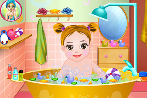 根据游戏中相关的提示,给宝宝洗澡护理。